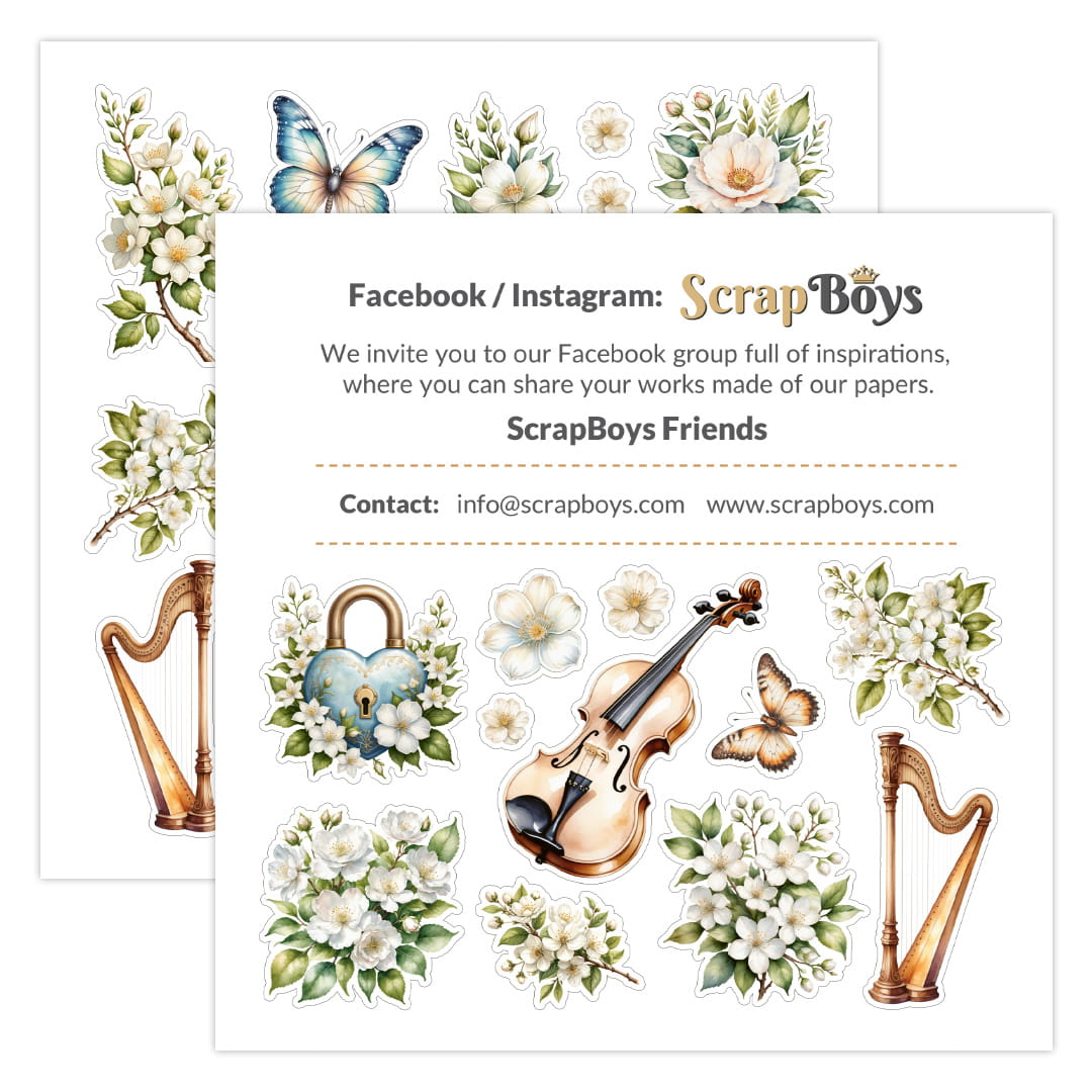 A block of 24 double-sided papers with elements for self-cutting by ScrapBoys. Acid-free, wood-free, dimensions 6"x6" - 190 gsm.